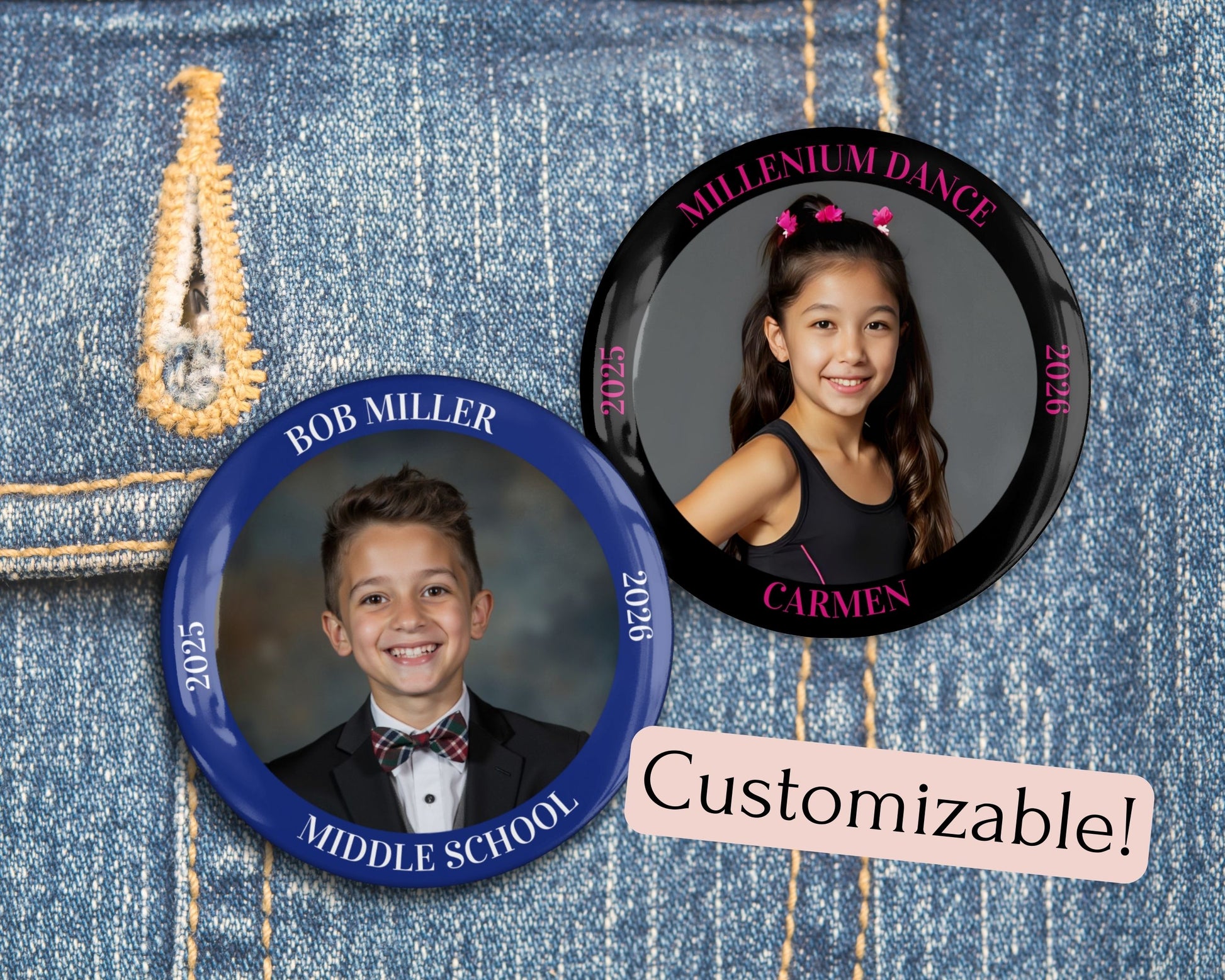 Personalized 2.25" Pin-Back Button – Add Photo, Rim Text & Colored Ring